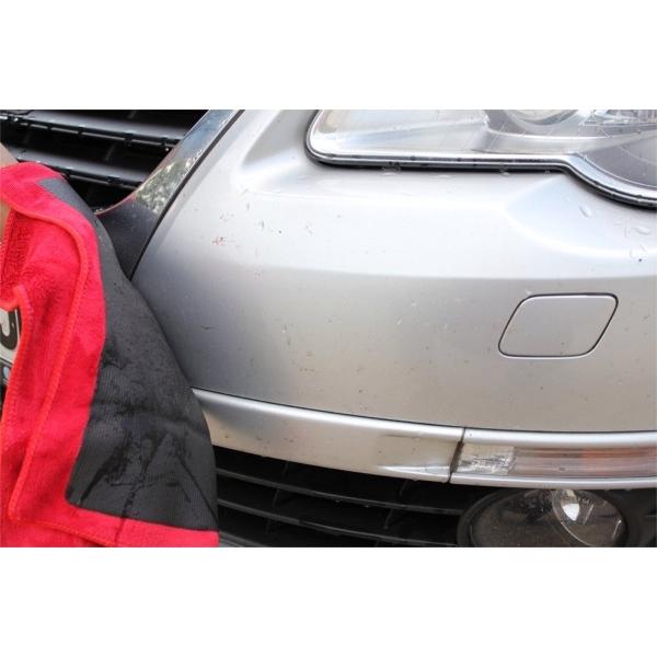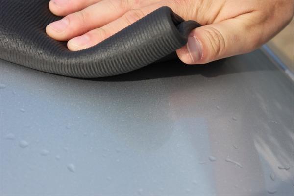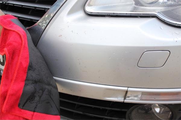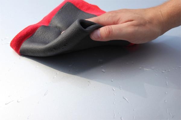 Empapar el trapo con champú pH neutro para vehículos y repasar suavemente la carrocería.