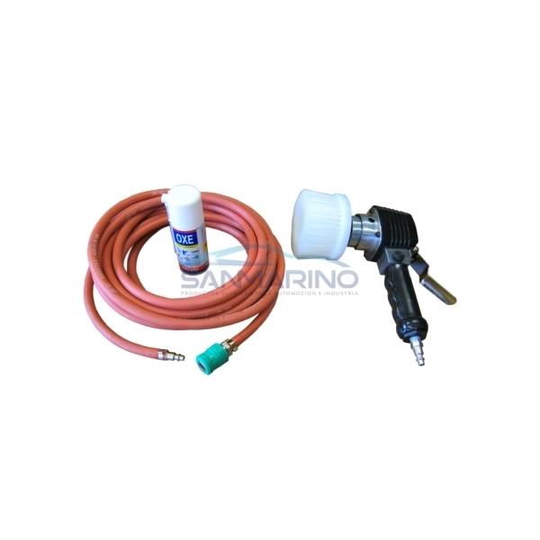 Turbina neumática con cepillo giratorio especial para la limpieza de tapicerías. Sustituye al cepillo manual clásico facilitando la velocidad de trabajo y evitando el cansancio y lesiones de brazos, manos y antebrazos.