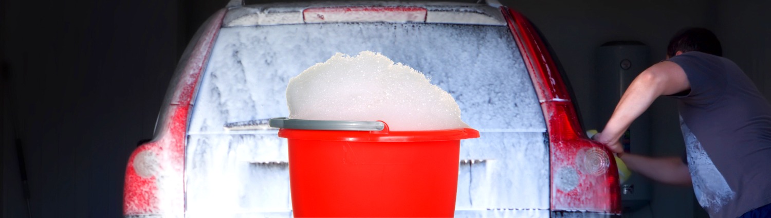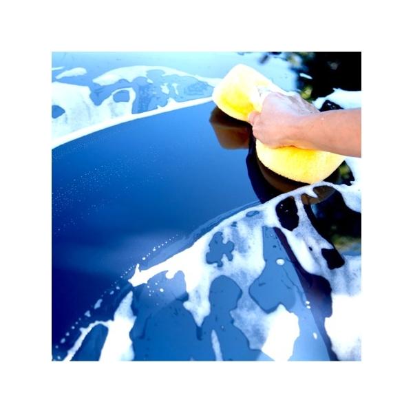 Présentation: Bouteille de 1 L. et éponge à haut rendement pour savonner la carrosserie.