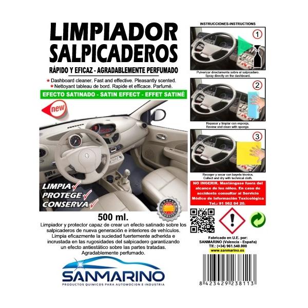 Cleaner and protector capable of creating a satin effect on the new generation dashboards inside vehicles.