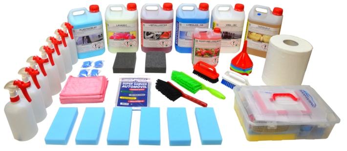 Kit completo para a limpeza interior e exterior em seco dos veículos: carros, motos, carrinhas, etc.